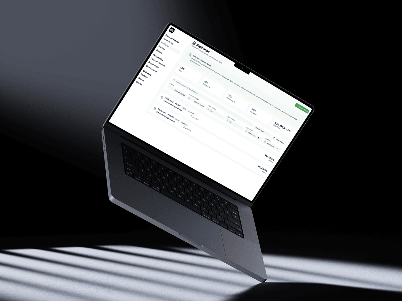 Consolidamos processos antes fragmentados em planilhas e ferramentas isoladas em um único software operacional, estruturado para suportar o dia a dia da empresa com eficiência e previsibilidade.
